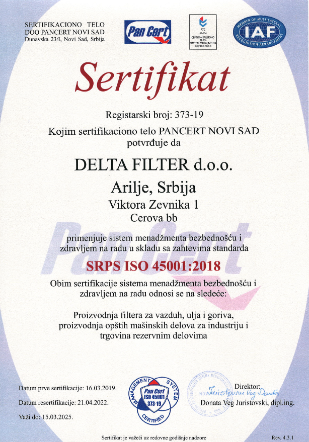 prvi put izdat sertifikat koji jasno garantuje da je primenjen sistem kvaliteta u skladu sa zahtevima